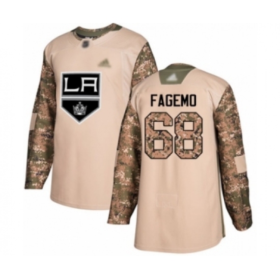 >Men's Los Angeles Kings #68 Samuel Fagemo Authentic Camo Veterans Day Practice Hockey Jersey
