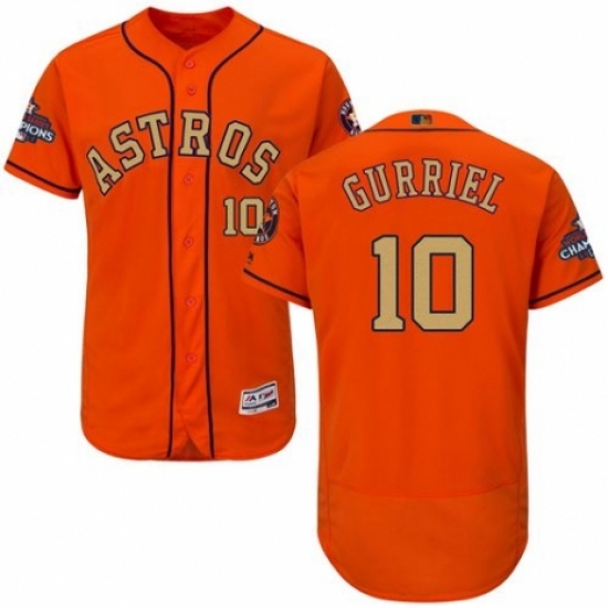 >Men's Majestic Houston Astros #10 Yuli Gurriel Orange Alternate 2018 Gold Program Flex Base Authentic Collection MLB Jersey