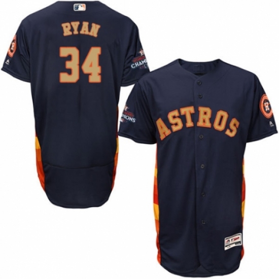 >Men's Majestic Houston Astros #34 Nolan Ryan Navy Blue Alternate 2018 Gold Program Flex Base Authentic Collection MLB Jersey