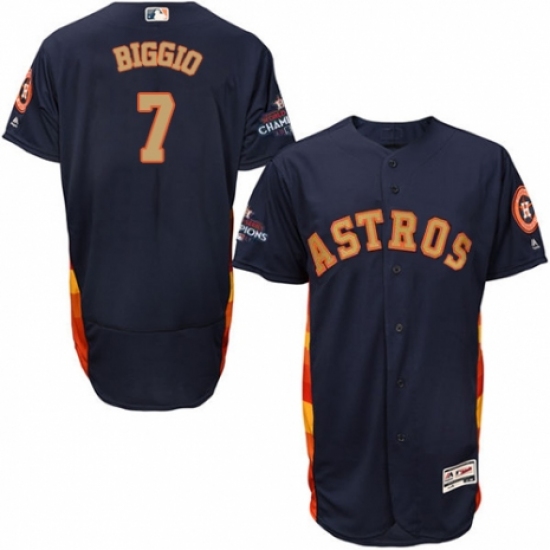 >Men's Majestic Houston Astros #7 Craig Biggio Navy Blue Alternate 2018 Gold Program Flex Base Authentic Collection MLB Jersey