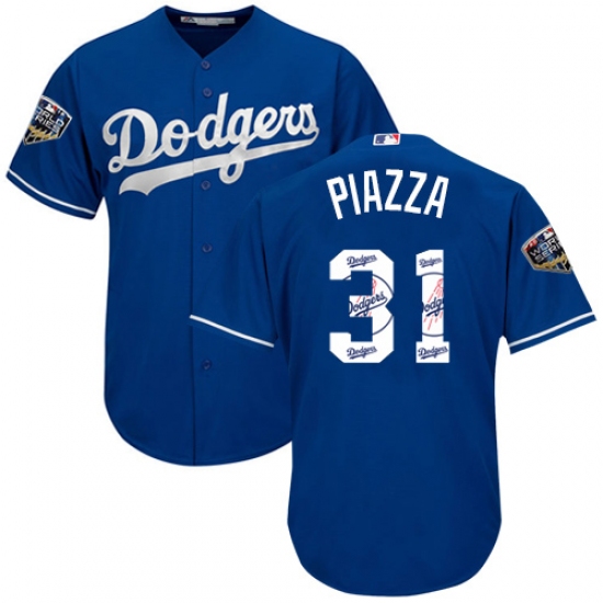 Men's Majestic Los Angeles Dodgers #31 Mike Piazza Authentic Royal Blue Team Logo Fashion Cool Base 2018 World Series MLB Jersey