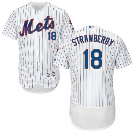 Men's Majestic New York Mets #18 Darryl Strawberry White Home Flex Base Authentic Collection MLB Jersey