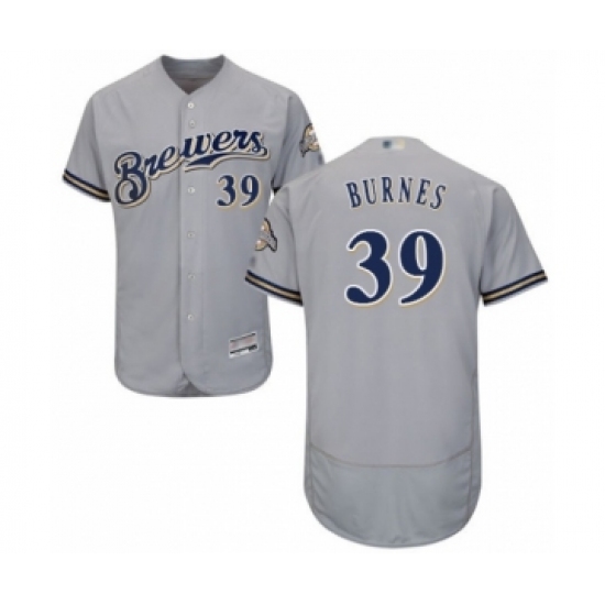 Men's Milwaukee Brewers #39 Corbin Burnes Grey Road Flex Base Authentic Collection Baseball Player Jersey