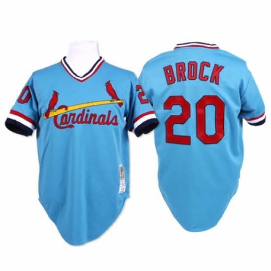 >Men's Mitchell and Ness St. Louis Cardinals #20 Lou Brock Authentic Blue Throwback MLB Jersey