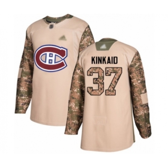 >Men's Montreal Canadiens #37 Keith Kinkaid Authentic Camo Veterans Day Practice Hockey Jersey
