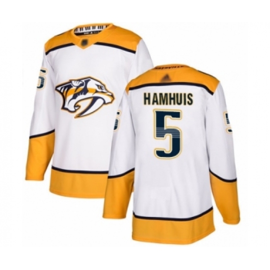Men's Nashville Predators #5 Dan Hamhuis Authentic White Away Hockey Jersey