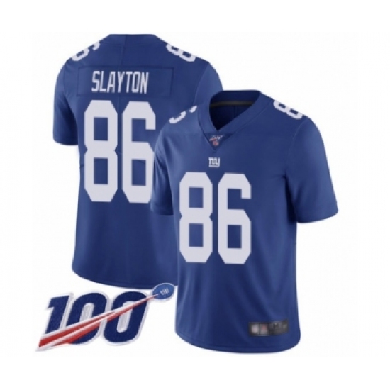>Men's New York Giants #86 Darius Slayton Royal Blue Team Color Vapor Untouchable Limited Player 100th Season Football Jersey