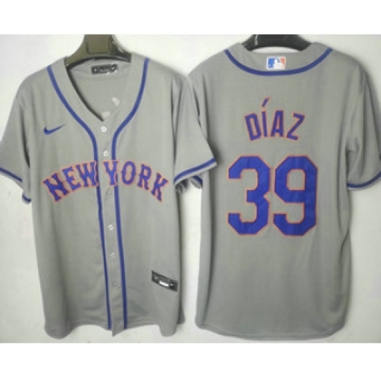 Men's New York Mets #39 Edwin Diaz Replica Grey Road Cool Base Baseball Jersey