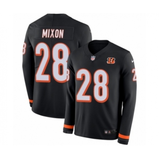 >Men's Nike Cincinnati Bengals #28 Joe Mixon Limited Black Therma Long Sleeve NFL Jersey