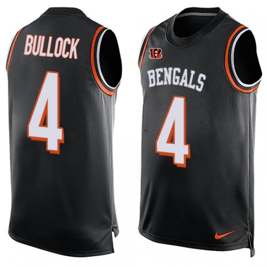 Home>NFL>Cincinnati Bengals>Randy Bullock>Men's Nike Cincinnati Bengals #4 Randy Bullock Limited Black Player Name & Number Tank Top NFL Jersey
