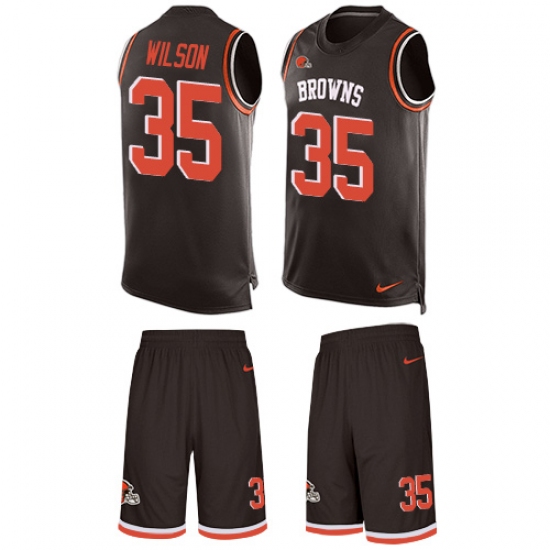 Home>NFL>Cleveland Browns>Howard Wilson>Men's Nike Cleveland Browns #35 Howard Wilson Limited Brown Tank Top Suit NFL Jersey