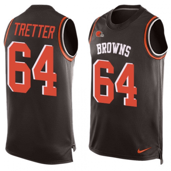 Home>NFL>Cleveland Browns>JC Tretter>Men's Nike Cleveland Browns #64 JC Tretter Limited Brown Player Name & Number Tank Top NFL Jersey
