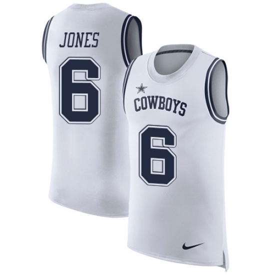Home>NFL>Dallas Cowboys>Chris Jones>Men's Nike Dallas Cowboys #6 Chris Jones Limited White Rush Player Name & Number Tank Top NFL Jersey