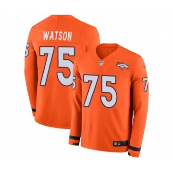 Men's Nike Denver Broncos #75 Menelik Watson Limited Orange Therma Long Sleeve NFL Jersey