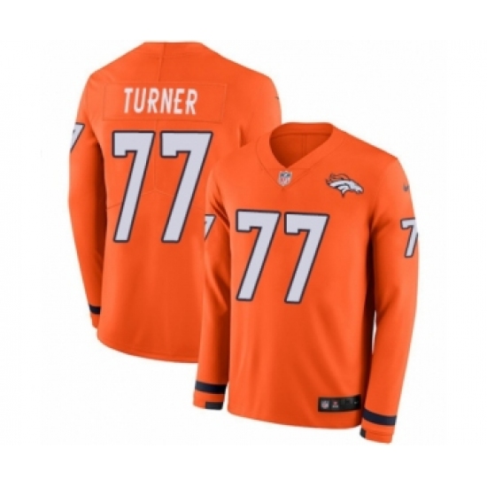 Men's Nike Denver Broncos #77 Billy Turner Limited Orange Therma Long Sleeve NFL Jersey