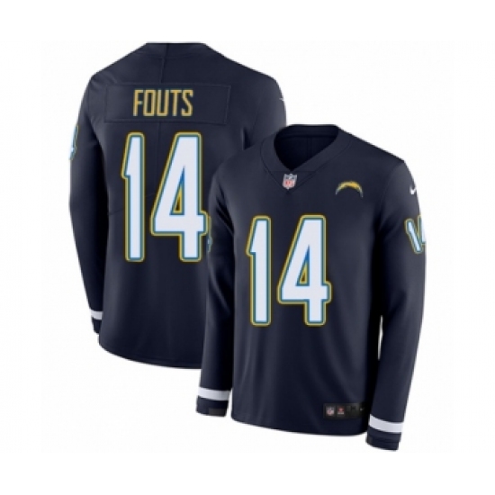 >Men's Nike Los Angeles Chargers #14 Dan Fouts Limited Navy Blue Therma Long Sleeve NFL Jersey