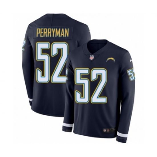 >Men's Nike Los Angeles Chargers #52 Denzel Perryman Limited Navy Blue Therma Long Sleeve NFL Jersey
