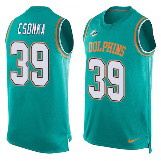 Home>NFL>Miami Dolphins>Larry Csonka>Men's Nike Miami Dolphins #39 Larry Csonka Limited Aqua Green Player Name & Number Tank Top NFL Jersey