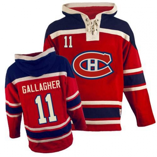 Home>NHL>Montreal Canadiens>Brendan Gallagher>Men's Old Time Hockey Montreal Canadiens #11 Brendan Gallagher Premier Red Sawyer Hooded Sweatshirt NHL Jersey