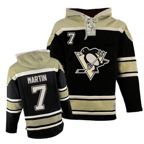 Men's Old Time Hockey Pittsburgh Penguins #7 Paul Martin Premier Black Sawyer Hooded Sweatshirt NHL Jersey