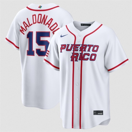 Men's Puerto Rico Baseball #15 Martín Maldonado White 2026 World Baseball Classic Home Stadium Stitched Jersey
