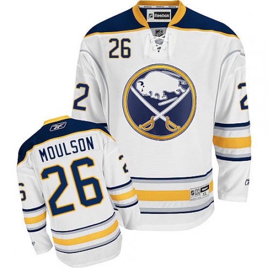 Home>NHL>Buffalo Sabres>Matt Moulson>Men's Reebok Buffalo Sabres #26 Matt Moulson Authentic White Away NHL Jersey