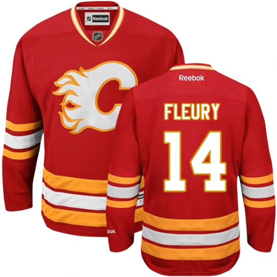 Home>NHL>Calgary Flames>Theoren Fleury>Men's Reebok Calgary Flames #14 Theoren Fleury Authentic Red Third NHL Jersey