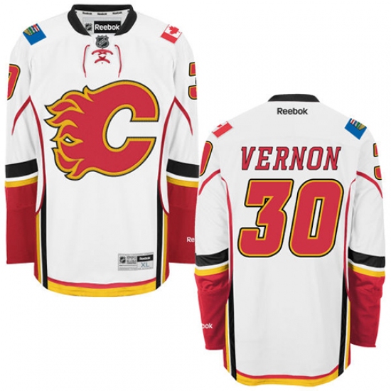 Home>NHL>Calgary Flames>Mike Vernon>Men's Reebok Calgary Flames #30 Mike Vernon Authentic White Away NHL Jersey