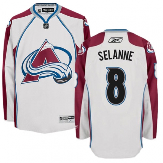 Home>NHL>Colorado Avalanche>Teemu Selanne>Men's Reebok Colorado Avalanche #8 Teemu Selanne Authentic White Away NHL Jersey