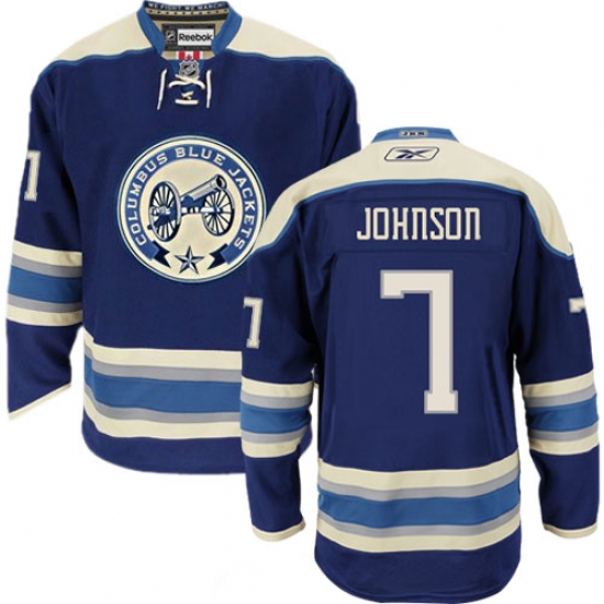 Men's Reebok Columbus Blue Jackets #7 Jack Johnson Premier Navy Blue Third NHL Jersey