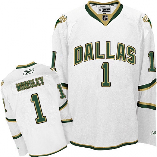 Men's Reebok Dallas Stars #1 Gump Worsley Authentic White Third NHL Jersey