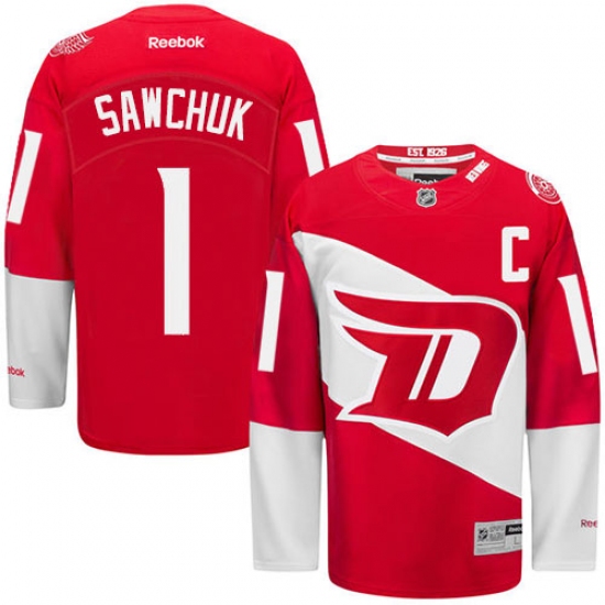 Home>NHL>Detroit Red Wings>Terry Sawchuk>Men's Reebok Detroit Red Wings #1 Terry Sawchuk Premier Red 2016 Stadium Series NHL Jersey