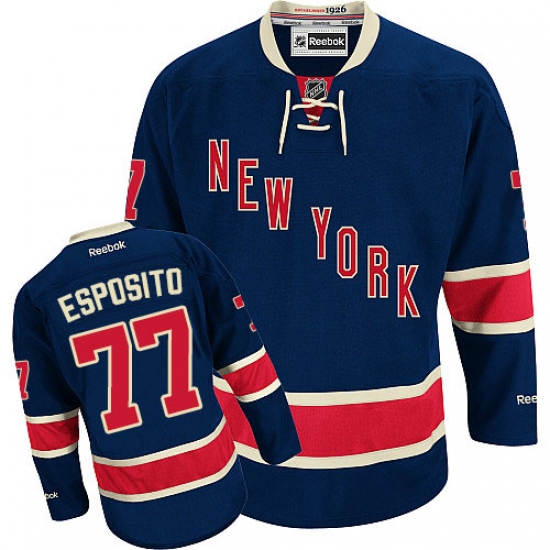 Home>NHL>New York Rangers>Phil Esposito>Men's Reebok New York Rangers #77 Phil Esposito Authentic Navy Blue Third NHL Jersey
