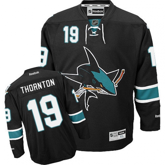 Home>NHL>San Jose Sharks>Joe Thornton>Men's Reebok San Jose Sharks #19 Joe Thornton Premier Black Third NHL Jersey