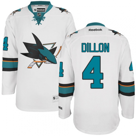 Home>NHL>San Jose Sharks>Brenden Dillon>Men's Reebok San Jose Sharks #4 Brenden Dillon Authentic White Away NHL Jersey