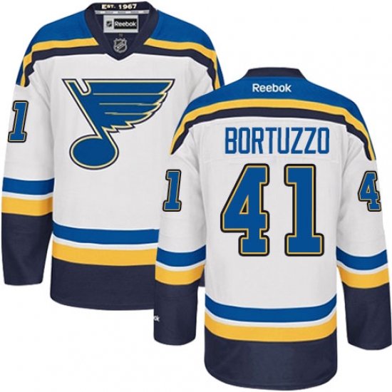 Home>NHL>St. Louis Blues>Robert Bortuzzo>Men's Reebok St. Louis Blues #41 Robert Bortuzzo Authentic White Away NHL Jersey