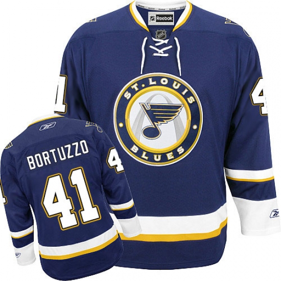 Home>NHL>St. Louis Blues>Robert Bortuzzo>Men's Reebok St. Louis Blues #41 Robert Bortuzzo Premier Navy Blue Third NHL Jersey