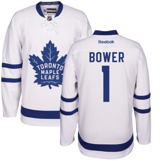 Home>NHL>Toronto Maple Leafs>Johnny Bower>Men's Reebok Toronto Maple Leafs #1 Johnny Bower Authentic White Away NHL Jersey
