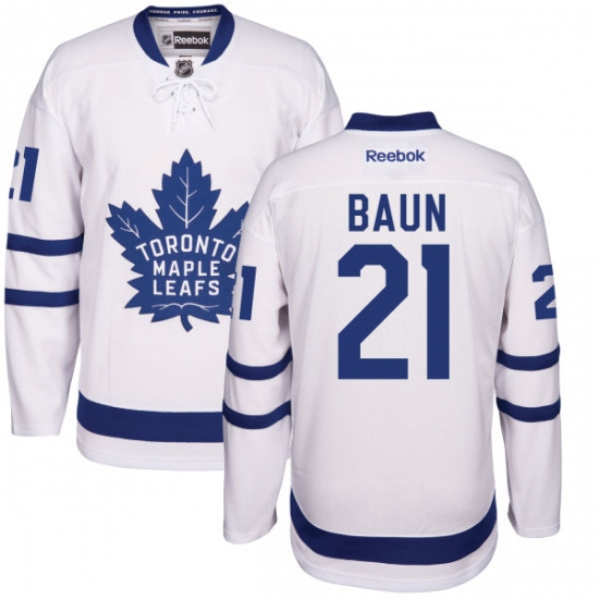Home>NHL>Toronto Maple Leafs>Bobby Baun>Men's Reebok Toronto Maple Leafs #21 Bobby Baun Authentic White Away NHL Jersey
