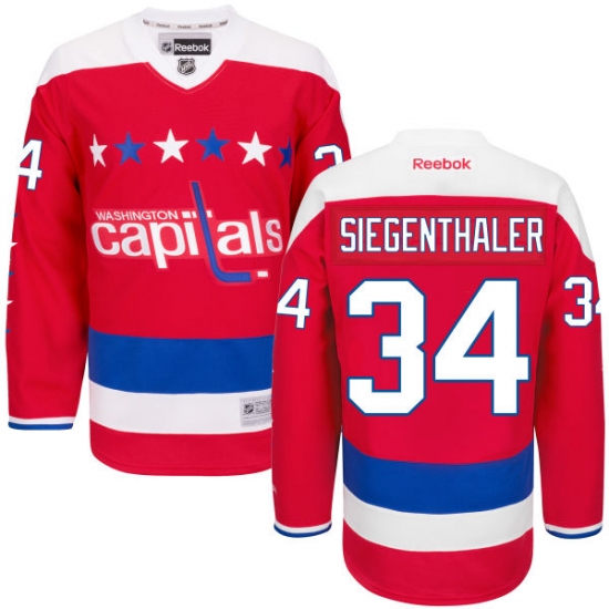Home>NHL>Washington Capitals>Jonas Siegenthaler>Men's Reebok Washington Capitals #34 Jonas Siegenthaler Premier Red Third NHL Jersey
