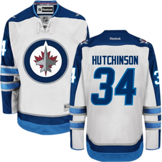 Home>NHL>Winnipeg Jets>Michael Hutchinson>Men's Reebok Winnipeg Jets #34 Michael Hutchinson Authentic White Away NHL Jersey