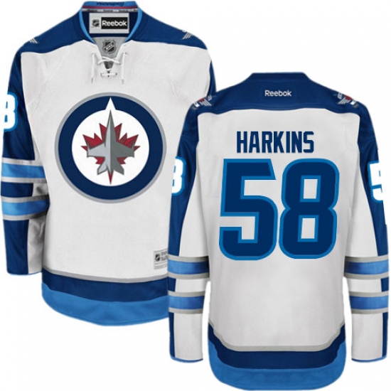 Home>NHL>Winnipeg Jets>Jansen Harkins>Men's Reebok Winnipeg Jets #58 Jansen Harkins Authentic White Away NHL Jersey