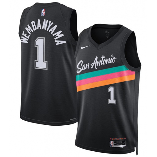 Men's San Antonio Spurs #1 Victor Wembanyama Black 2022-23 Icon Edition Stitched Basketball Jersey