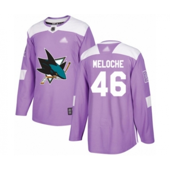 >Men's San Jose Sharks #46 Nicolas Meloche Authentic Purple Fights Cancer Practice Hockey Jersey