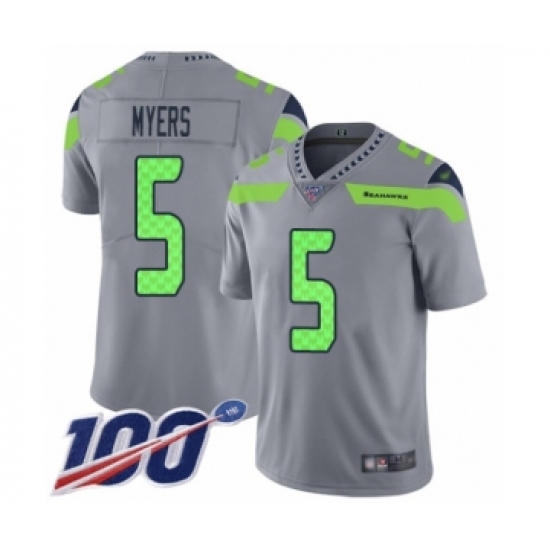 >Men's Seattle Seahawks #5 Jason Myers Limited Silver Inverted Legend 100th Season Football Jersey