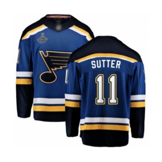 >Men's St. Louis Blues #11 Brian Sutter Fanatics Branded Royal Blue Home Breakaway 2019 Stanley Cup Champions Hockey Jersey