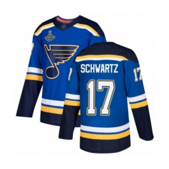 Men's St. Louis Blues #17 Jaden Schwartz Authentic Royal Blue Home 2019 Stanley Cup Champions Hockey Jersey