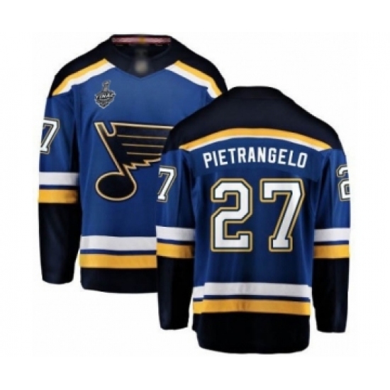 >Men's St. Louis Blues #27 Alex Pietrangelo Fanatics Branded Royal Blue Home Breakaway 2019 Stanley Cup Final Bound Hockey Jersey
