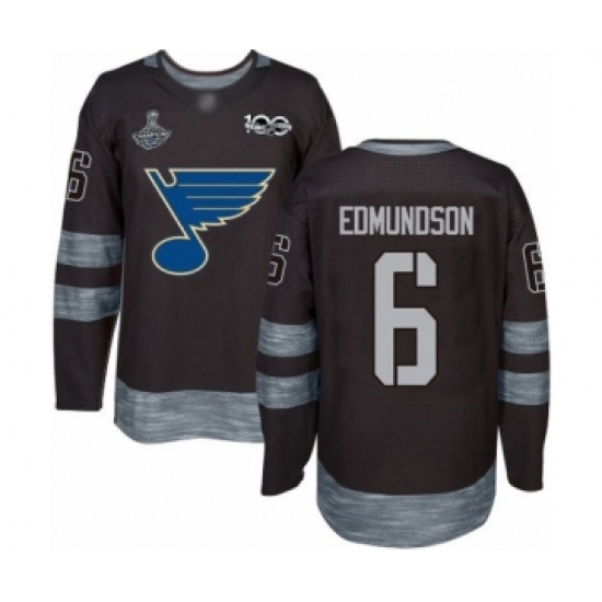 Men's St. Louis Blues #6 Joel Edmundson Authentic Black 1917-2017 100th Anniversary 2019 Stanley Cup Champions Hockey Jersey