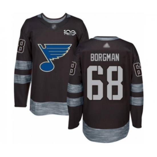 Men's St. Louis Blues #68 Andreas Borgman Authentic Black 1917-2017 100th Anniversary Hockey Jersey